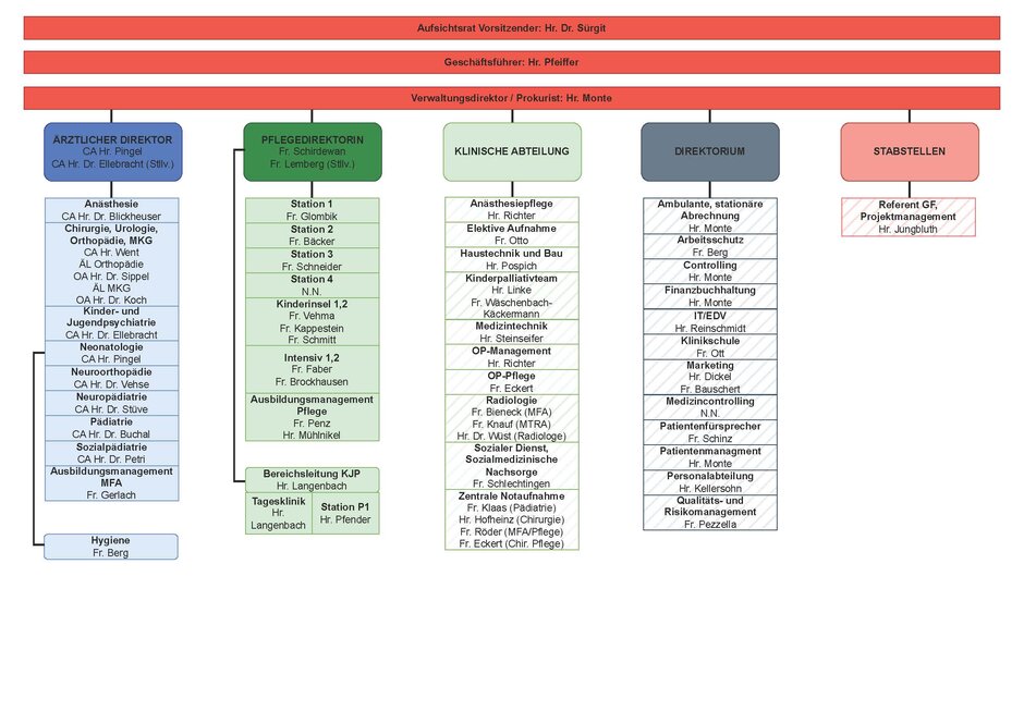 Die Betriebsleitung der DRK-Kinderklinik Siegen gGmbH besteht aus einem Gremium von Führungskräften unter Leitung von Geschäftsführer Fred-Josef Pfeiffer, das sich monatlich zur Abstimmung trifft.